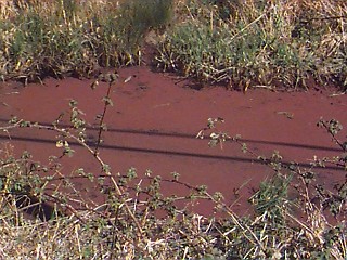 Red Scum floating in ditch south of Lincoln, City, Oregon. The mat was about 70 cm. thick