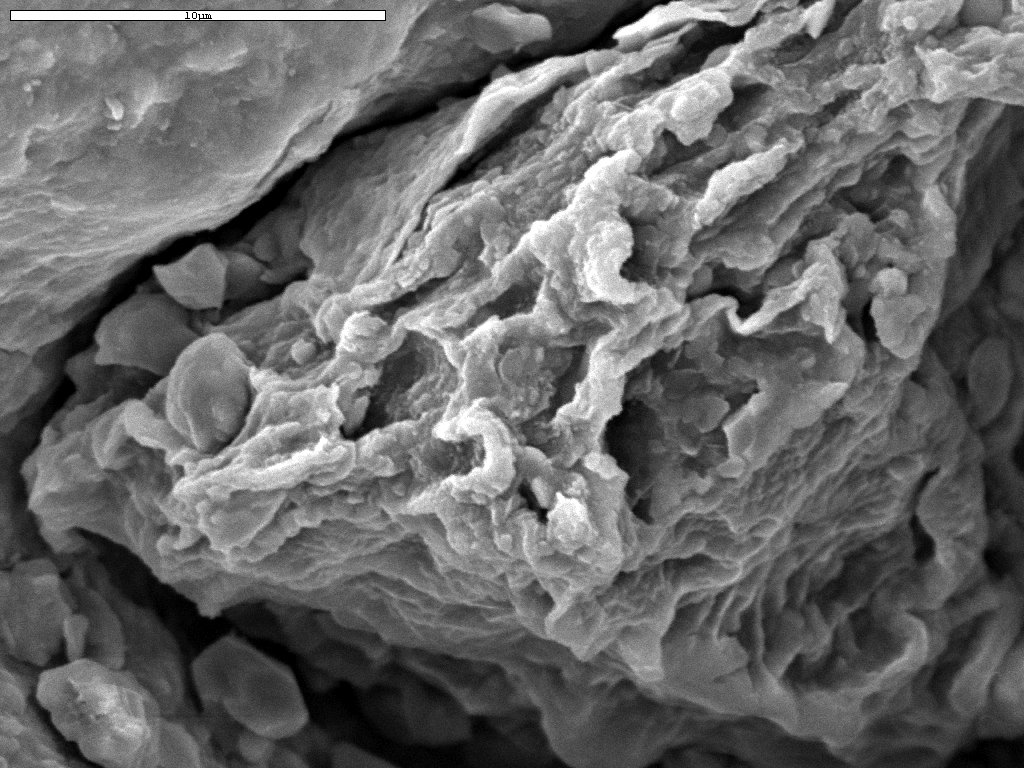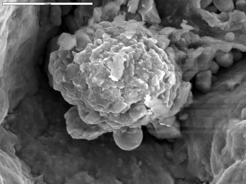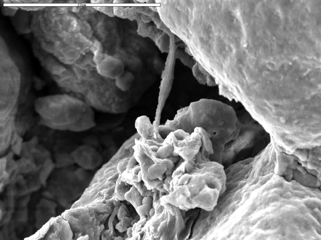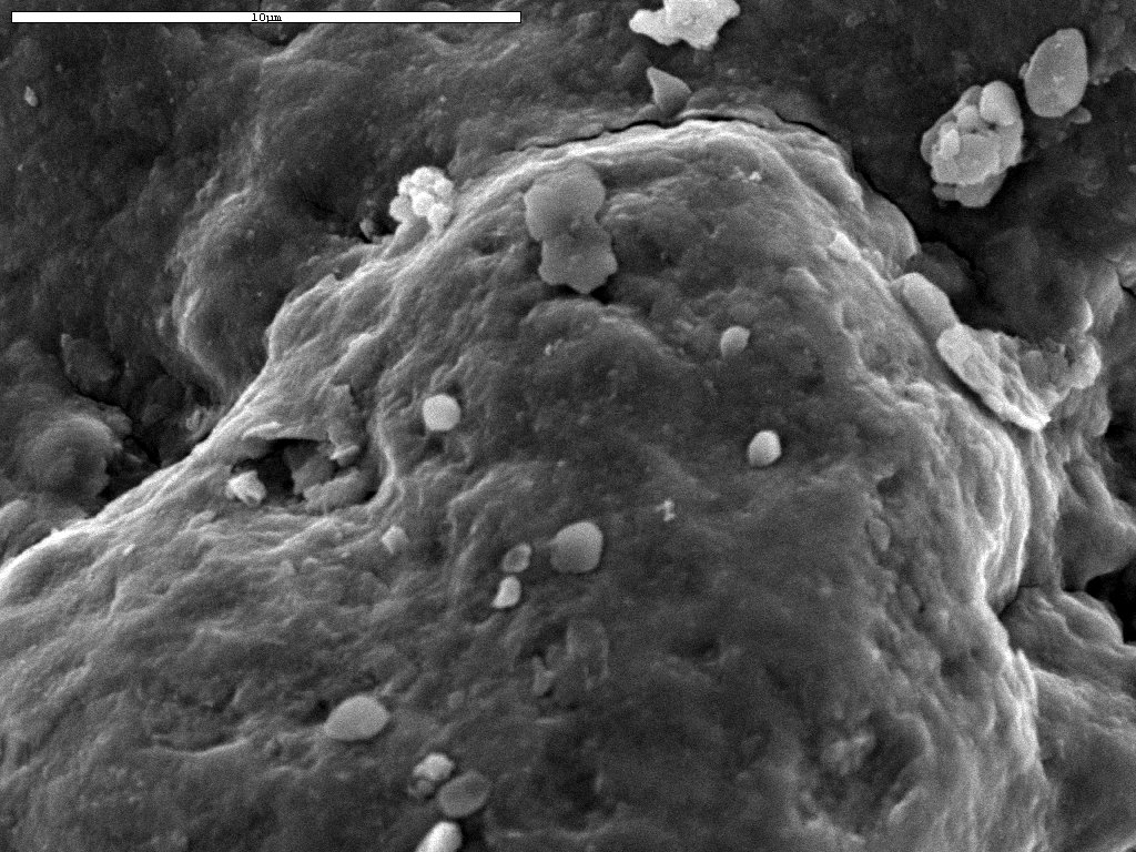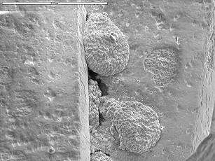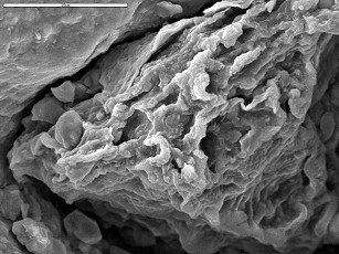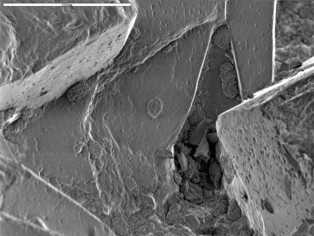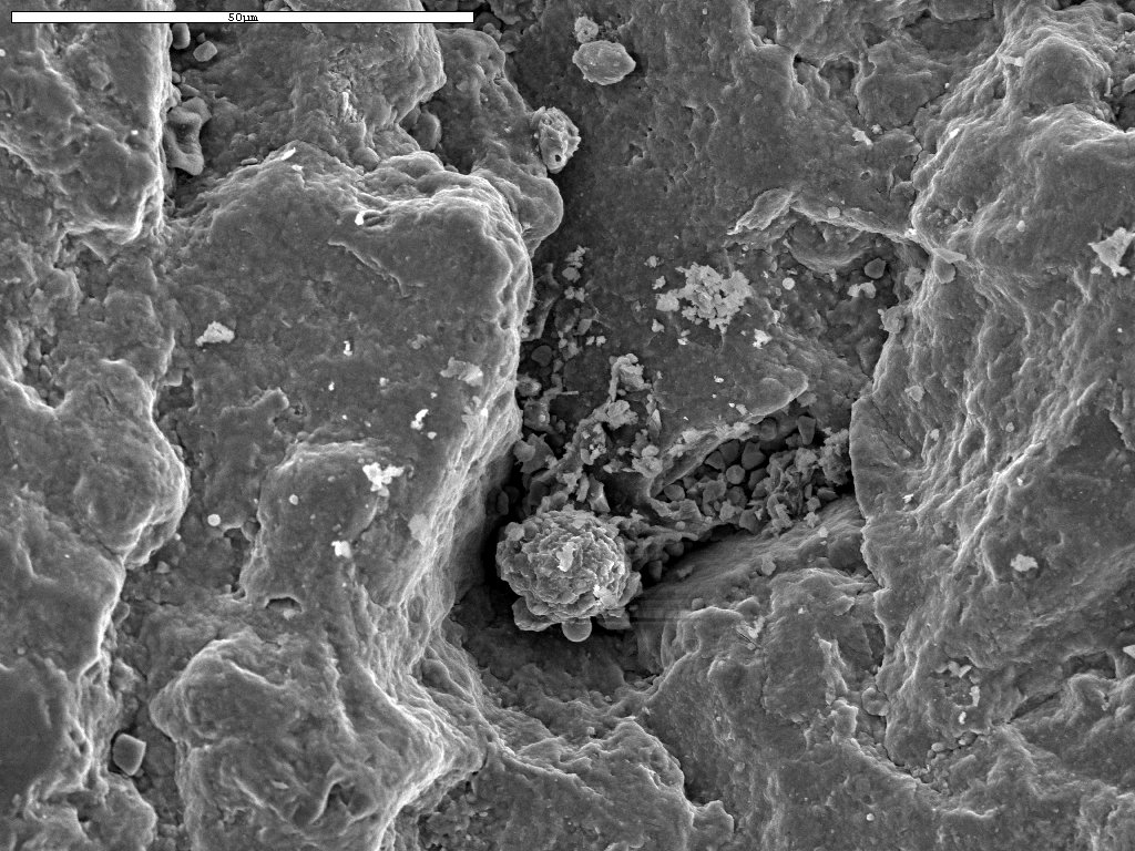 ![]() Biofilm goo in crack, lots of organic carbon in the EDS graph. |