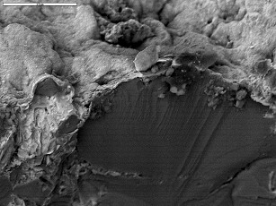 These images are from two desert varnish pieces, soaked for 3 hours in water. They were then allowed to incubate for 40 hours, fixed in glutaraldehyde and then vacuum oven dried. Au/Pd coated. |